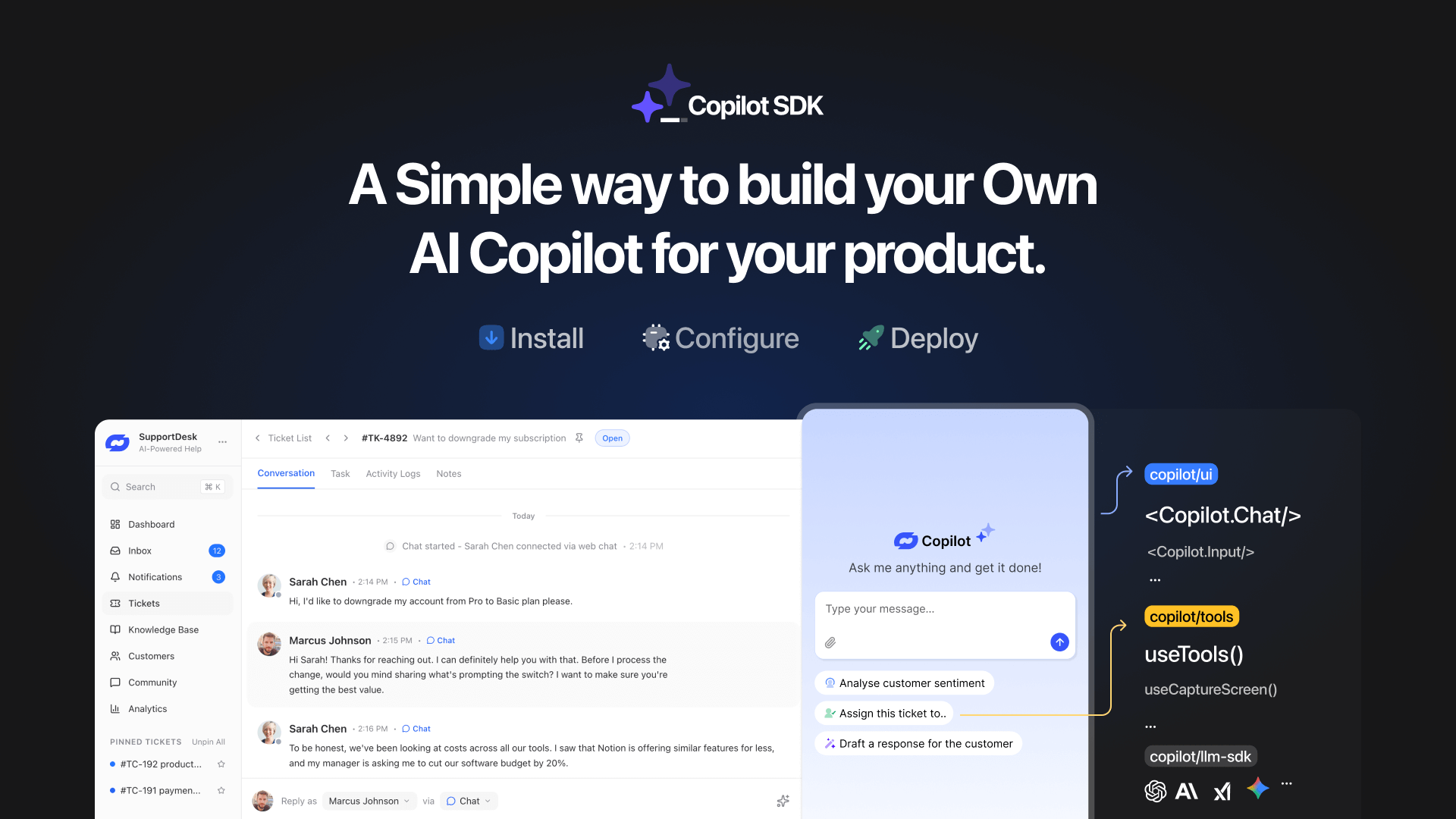 - Introducing the Copilot Builder. Add an AI Copilot to your product to turn user conversations into actions, automate workflows, and manage tasks across SaaS, e-commerce, support, and more.
